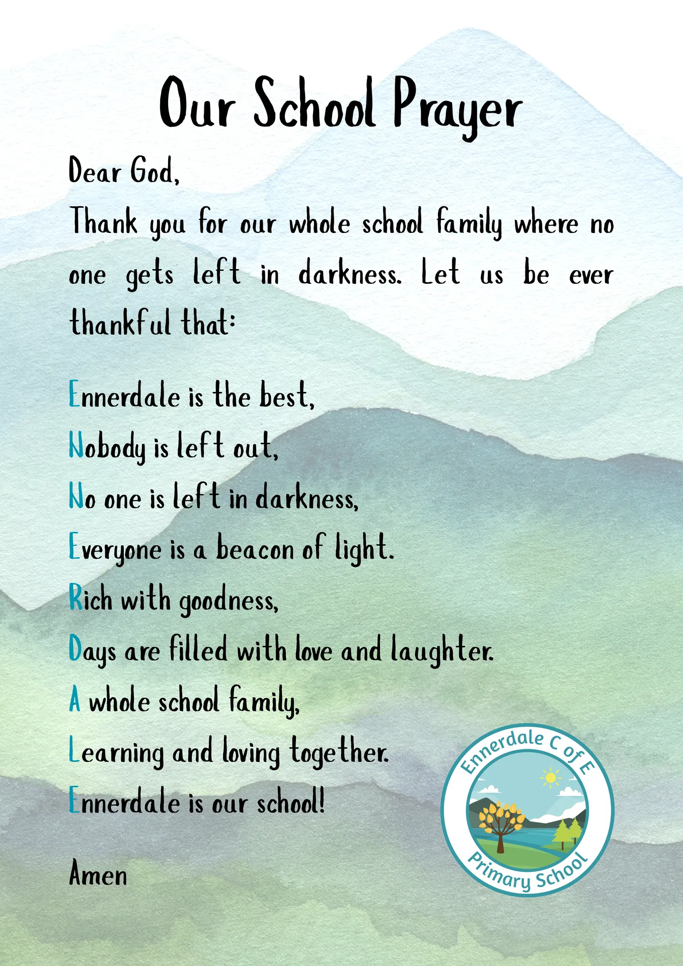 Together, the children worked as one school family to write a brand-new school prayer, reflecting on the many blessings God has given us and what we, as a community, are most thankful for. Guided by faith and love, we talked about the importance of beginning our prayer with a traditional Christian opening, honouring God and inviting His presence into our hearts and school life. The children then chose to present the rest of the prayer in an acrostic format, using each letter to reflect on what, as a school, makes us have a postitive imapact on the world.