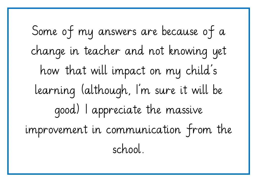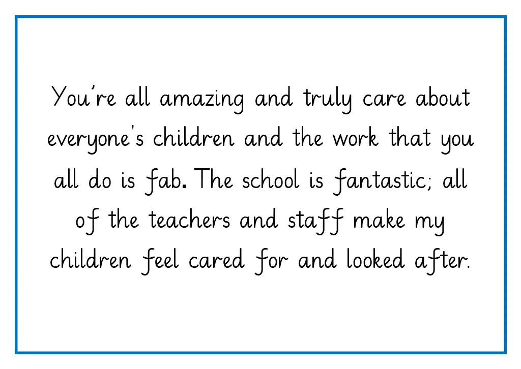 In November 2025, we distributed a questionnaire to all parents to gather their feedback. The questionnaire included a section for parents to share comments, including both positive reflections and suggestions for improvement. Below are the results of the questionnaire, along with a selection of comments we received. We were delighted by the results of the questionnaire.