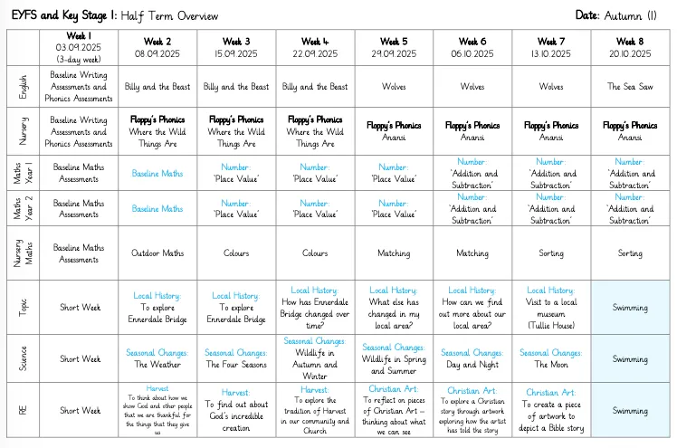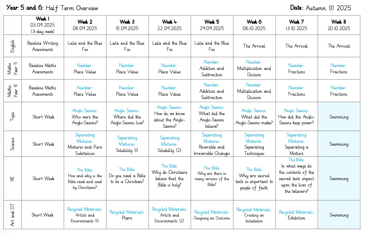 Each half term our teachers outline the learning that each class will focus on. This information is shared with parents and is available by clicking on each document below.